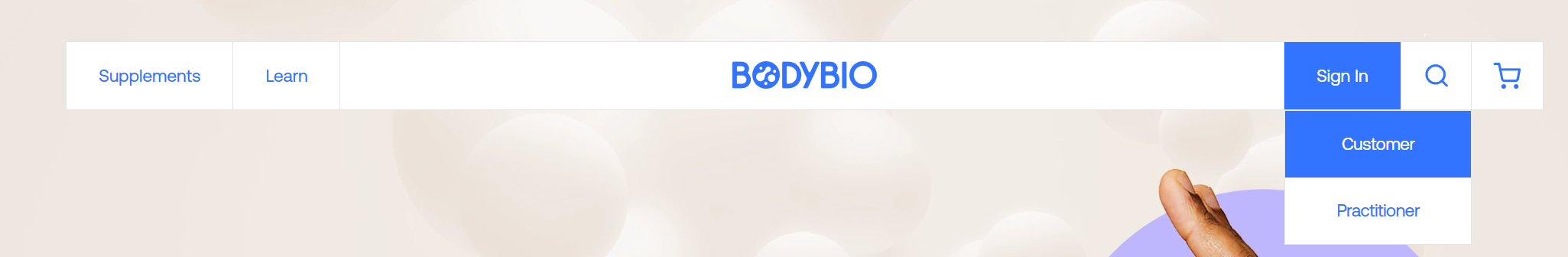 If you have successfully placed an order on bodybio.com, you will be able to log in by selecting "Sign In" on the top right hand side of the screen.